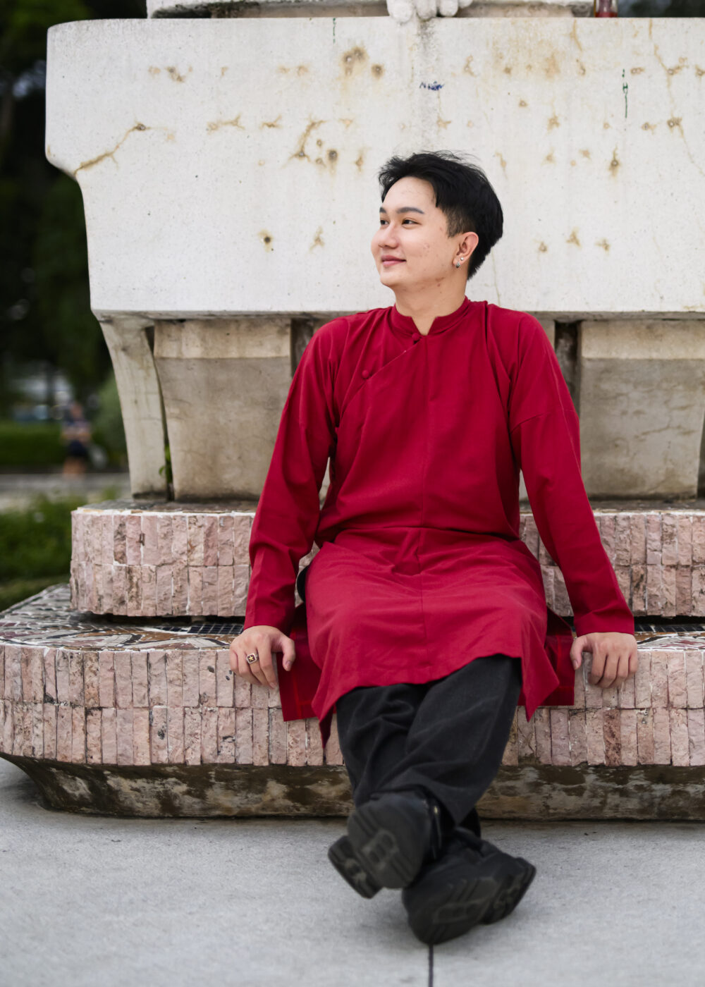 Tính in the traditional Vietnamese Áo Dài.